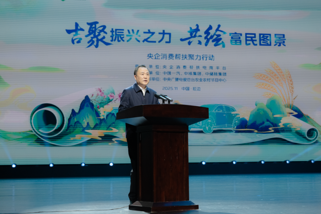 11月14日,由国务院国资委社会责任局指导,中国一汽、中粮集团、中储粮集团联合主办的“吉聚振兴之力 共绘富民图景”央企消费帮扶聚力行动在延边工人文化宫正式开幕。