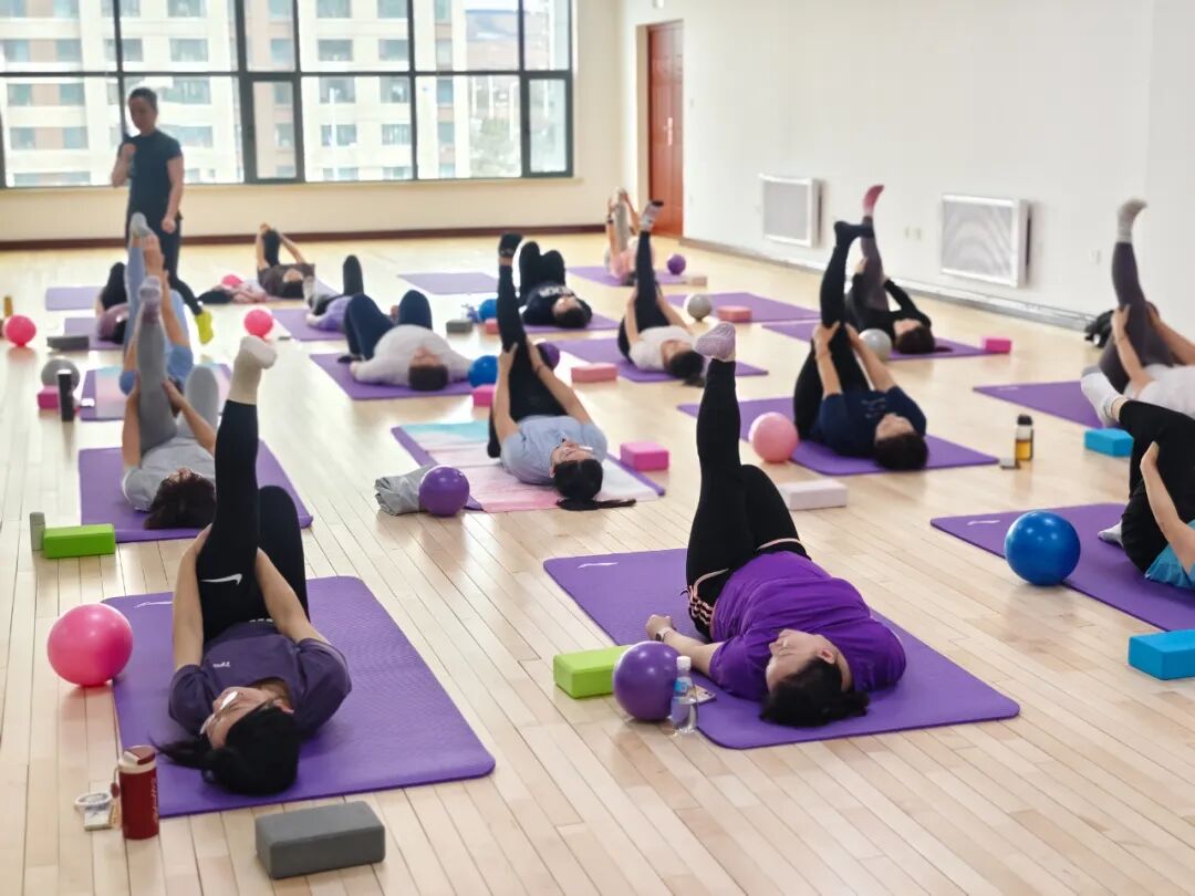 垫上普拉提班的学员们也不甘示弱。在轻柔的音乐声中,他们以优雅的姿态在垫子上完成着各种普拉提动作。无论是腹部的收紧、背部的伸展还是肢体的平衡控制,都展现出了他们良好的身体柔韧性和肌肉力量。通过这段时间的学习,学员们不仅增强了身体素质,还学会了如何在日常生活中保持正确的身体姿态,预防各种疾病。